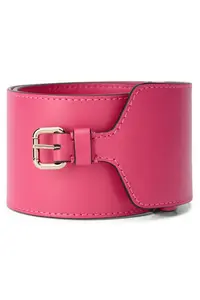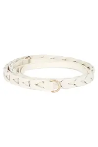 This belt in pale pink shades features an elegant and sophisticated design. Made with a braided texture, it adds a touch of refinement to any outfit. The closure has a gold buckle, ensuring optimal comfort during use. Perfect for those who love accessories that combine style and versatility. 100% lambskin.