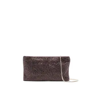This stylish Benedetta Bruzziches Bag features a shadow grey crystal embellishment, a chic chain strap, and a secure zip fastening. Its rectangular shape adds a sophisticated touch to any outfit.