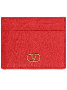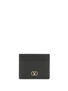 The Valentino Garavani Vlogo Signature card holder in black features 4 slots and a central open pocket, crafted from 100% calf leather. Elevate your accessory collection with this stylish and functional piece.