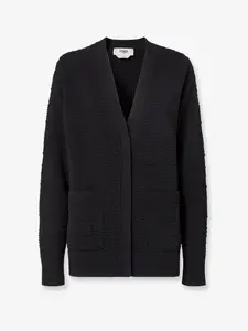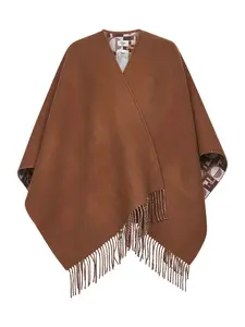 This luxurious cashmere and wool poncho features a reversible design with fringed trim and a Macro FF motif. Made in Italy, it combines 51% wool and 49% cashmere for a cozy feel. Dimensions are 145cm wide by 140cm high.