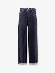 SEMICOUTURE Buddy Blue Pants With Drawstring Elastic Waist In Cotton Stretch