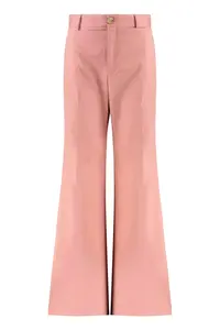 These elegant high-waisted flare trousers from Chloé are crafted from a luxurious blend of 61% silk and 39% wool, ensuring both comfort and style. The pocket lining is made from 100% ramie, adding an extra touch of sophistication.