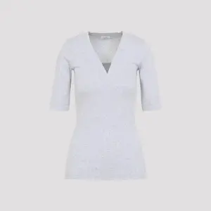 Brunello Cucinelli Cotton Sweater with V Neck and Monile Detail