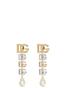 Dolce & Gabbana Silver-colored Earrings With Clip Closure And DG Logo Pendant In Bronze