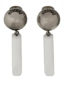 Elevate your style with these Moschino Logo Earrings, made from 100% brass and crafted in Italy. Perfect for adding a touch of luxury to any outfit.