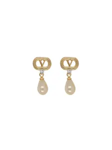 Valentino earrings featuring a gold-tone polished finish, a signature V plaque, and crystal embellishment. These post-back fastening earrings come as a pair and can be complemented with other Valentino Garavani accessories. Composition: Metal.
