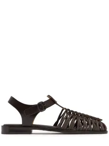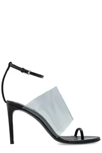 Experience luxury with these leather sandals featuring a squared toe, logoed midsole, and a covered stiletto heel. Made in Italy, these sandals come with a leather sole and a heel height of 9 cm.
