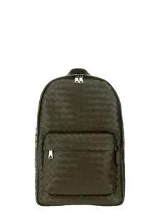 This stylish suede backpack features a beautiful woven pattern, a leather handle, and adjustable shoulder straps for comfort. It has a convenient zip closure with a double slider, showcasing the logo on the front and includes one external zip pocket for easy access. Made in Italy, this backpack combines elegance with practicality.