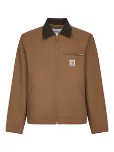 The OG Detroit Cotton Jacket features a zip closure and a classic corduroy collar. It has one zipped chest pocket with a woven logo label, slanted front pockets, and adjustable button cuffs. It is made from 100% cotton and comes in a stylish beige design. The jacket includes a front zip closure, long sleeves, and snap-buttoned side waist adjusters, making it a versatile and comfortable choice. With its triple-stitched and lined construction, this jacket offers a durable option for every occasion.