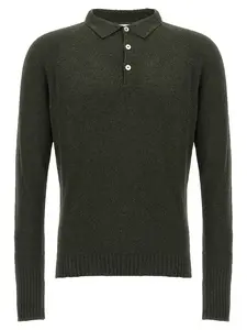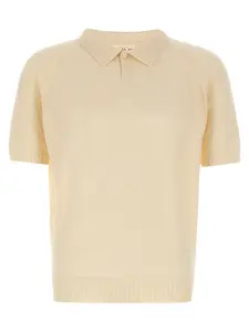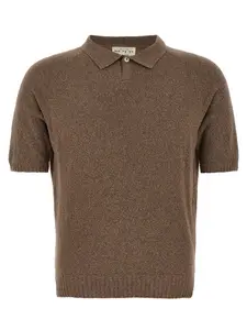 Polo shirt in a cotton blend with a spongy effect, featuring a collar and button, short sleeves with cuffs, side slits, and a band on the hem. Composition: 75% cotton, 25% polyamide.