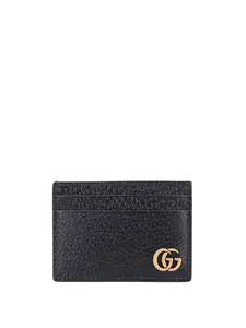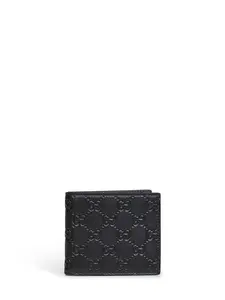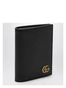 This luxurious GUCCI bi-fold card case wallet features a brass-toned metal Double G at the front. It offers an interior that includes one bill compartment, two flat pockets, and eight credit card slots. Crafted from textured-effect heat-stamped calfskin leather, this wallet is made with metal-free tanned leather for an eco-friendly touch. With dimensions of 11 X 9 X 2 cm, it comes in a sleek black color and is made from 100% calf leather, ensuring both quality and style. Made in Italy.