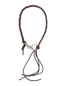 The Braided Ladon Keychain features a stylish design made from black braided rope, complemented by a silver-tone metal hook and keyring. This functional accessory adds a sophisticated touch to your everyday essentials. The secure closure and ease of use make it highly practical. Crafted from high-quality braided rope and cow leather, this versatile piece measures 40 cm in length.