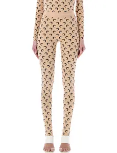 These high-rise leggings by Marine Serre showcase the label's signature all-over moon print in a sleek, second-skin silhouette. Crafted from stretch jersey for a sculpting fit, they feature a tonal elastic waistband detailed with the Marine Serre logo. The distinctive ankle loop finish adds both functionality and a modern, sporty touch. Composition: 88% polyamide, 12% elastane.