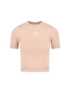 This Short Catsuit by Marine Serre is crafted from soft ribbed jersey and features slender straps for a sleek, body-conscious fit. The signature moon logo is embroidered at the front under the neck, complemented by a woven branded label at the back, combining minimalist style with subtle brand detailing. Made from soft ribbed jersey fabric, it includes slim straps and a fitted, body-conscious design.