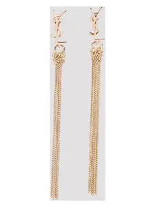 This stunning gold metal Cassandre single earring features a unique hammered design and is perfect for non-pierced ears with its convenient back clip fastening. The iconic Saint Laurent logo is elegantly engraved at the back, showcasing its premium quality. Measuring 2 x 4 cm, this earring is made of 100% brass, making it a luxurious addition to any outfit. Designed and crafted in Extra EU.